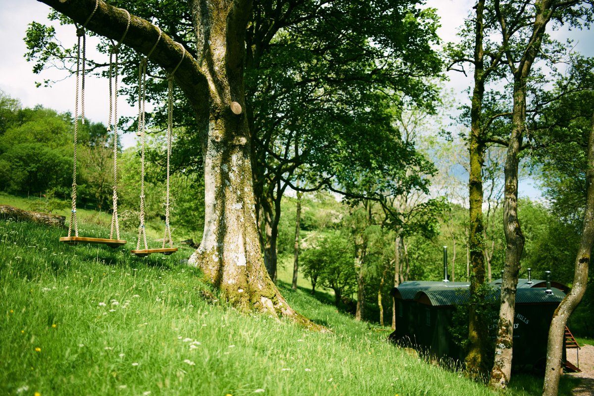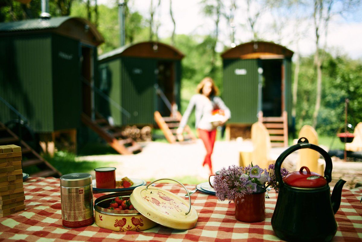 In a woodland clearing in the Black Mountains, a collection of shepherd huts provide off-grid accommodation for small groups of adventurous travellers.