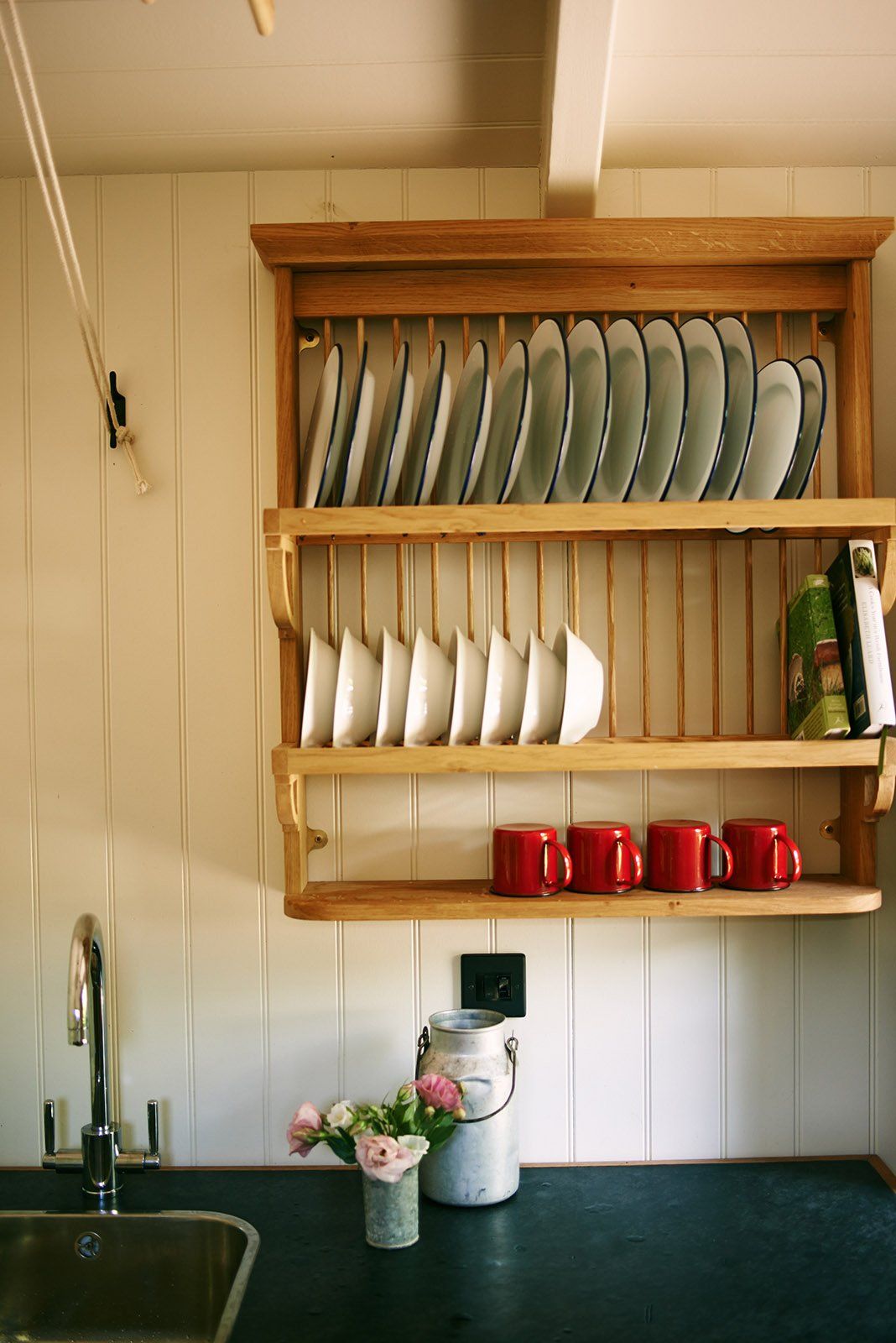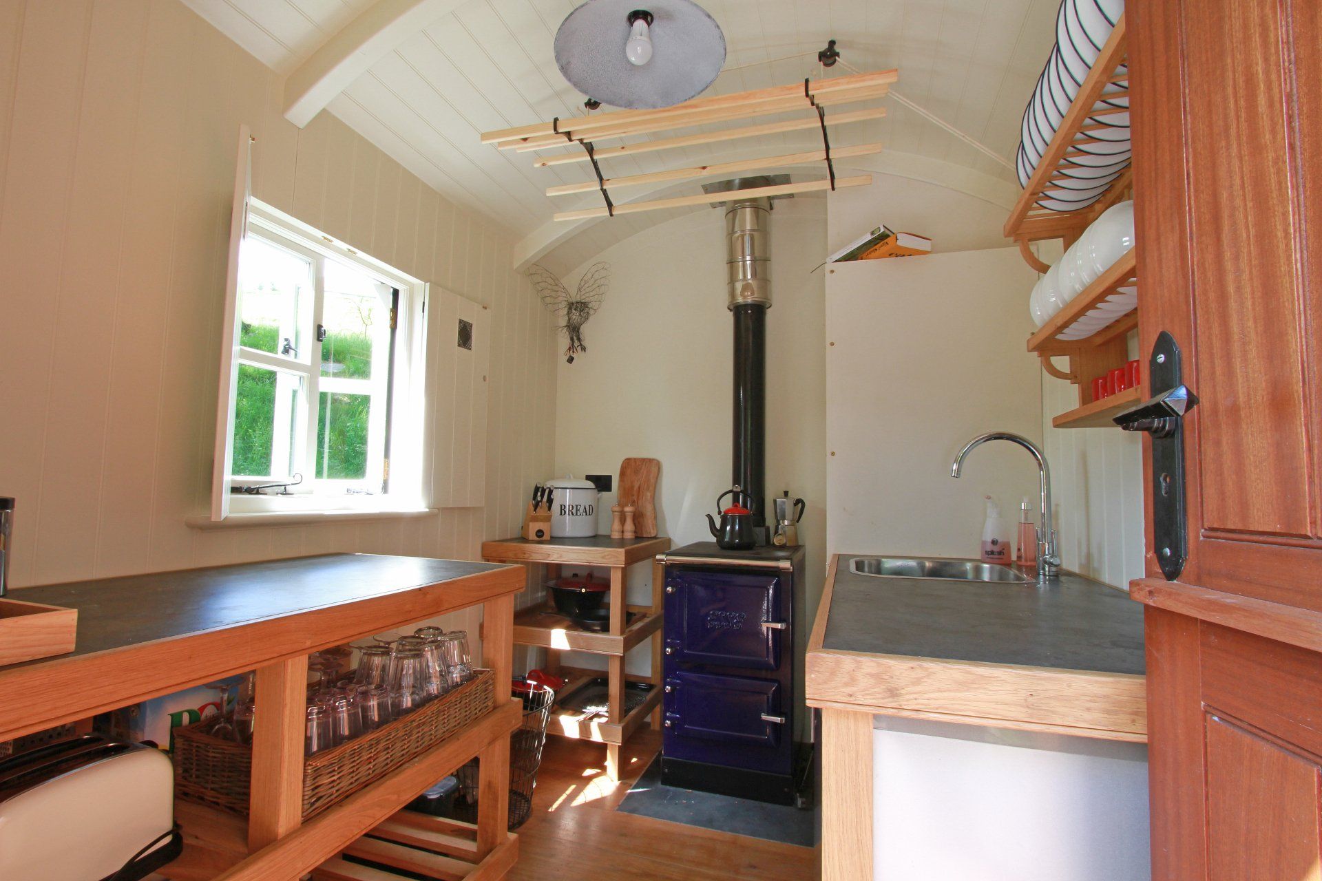 The communal utility hut has a kitchen with a wood-burning oven, fridge and cooking utensils. At the back of this hut is a modern WC and shower. The Huts in the Hills are perfect for those looking for glamping in Wales.